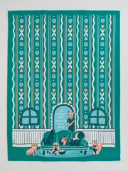 Doin' all the things at once. screen printed dish towel with water-based inks. 100% cotton. 28”h x 21”w